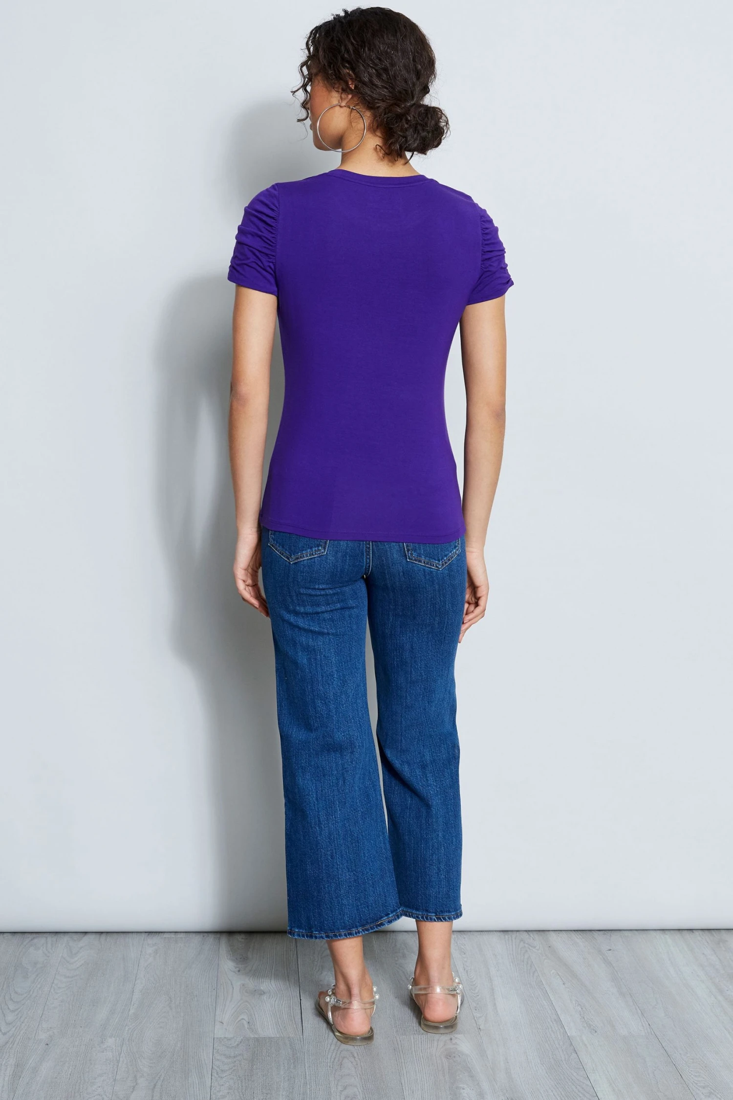 - Short Sleeve Crewneck Jersey Tee with Ruched Puff Sleeves