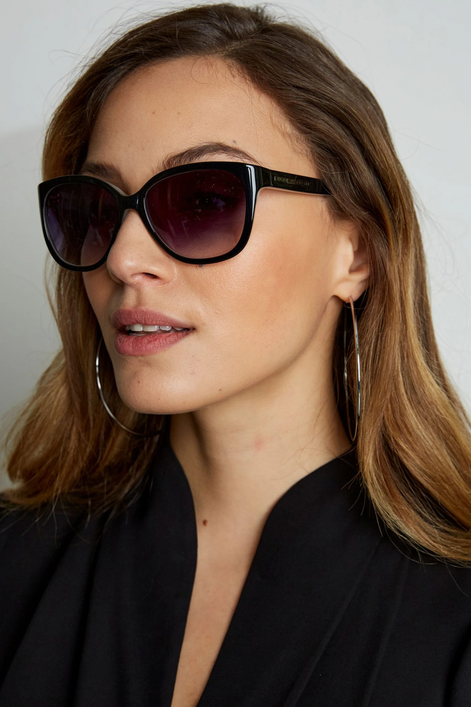 These Elie Tahari sunglasses feature a timeless silhouette that are perfect for year-round. Ideal for sunny days, these sunglasses are 100% UV protected & scratch resistant. A hard case & cleaning cloth are included.