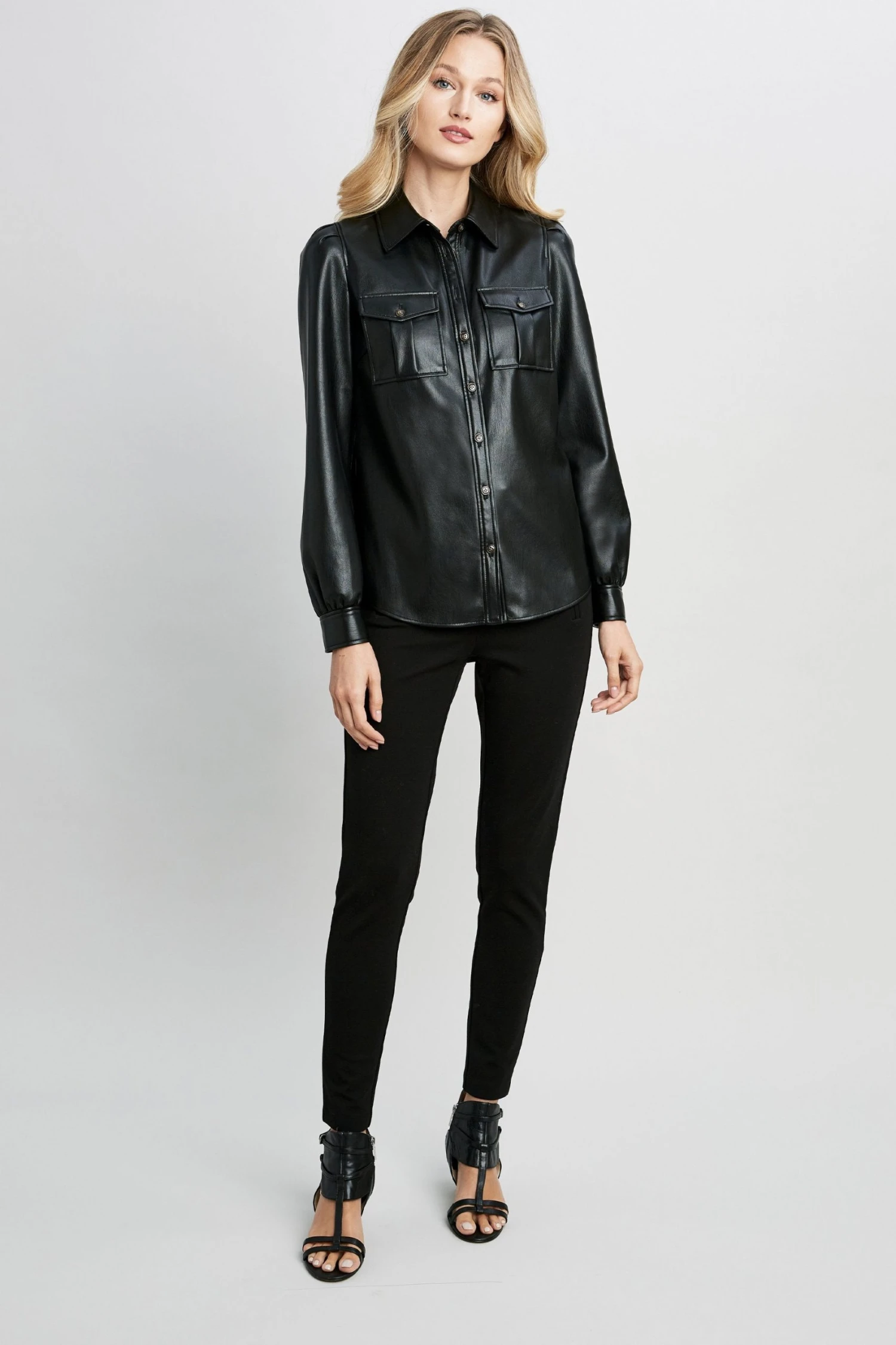 Is it a Shirt Is it a Jacket It’s our favorite layering piece for Fall. Our Vegan Leather Shacket feels like butter, but wears like leather. Versatile & edgy, this Shacket will instantly update your Fall Wardrobe.