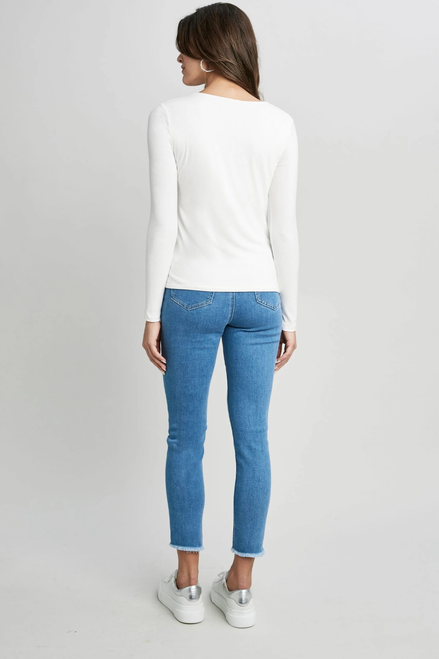 Add texture to your T-shirt collection with our Square Neck Long Sleeve Top. Rendered in Luxe Modal Rib Knit, the rounded square neck & long sleeves add to its modern attitude. With its body skimming shape & seamless fit, it’s perfect for all season layering.